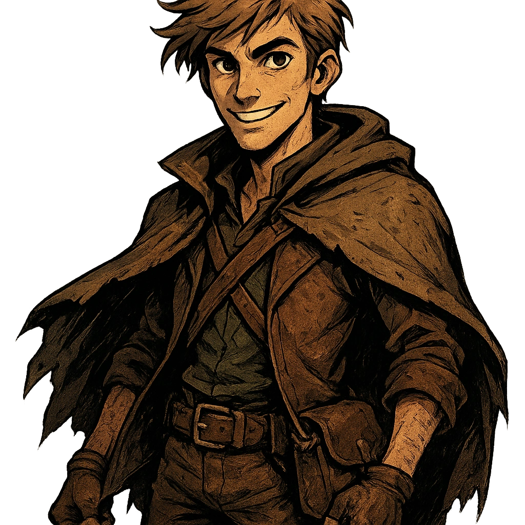 The only child of William Grimsby, the beloved shopkeeper of Southaven, Daran grew up surrounded by travelers, adventurers, and stories of far-off places. From a young age, he helped in the shop — fetching supplies, cataloging goods, and chatting with customers — but his attention always drifted to the tales of the open road.