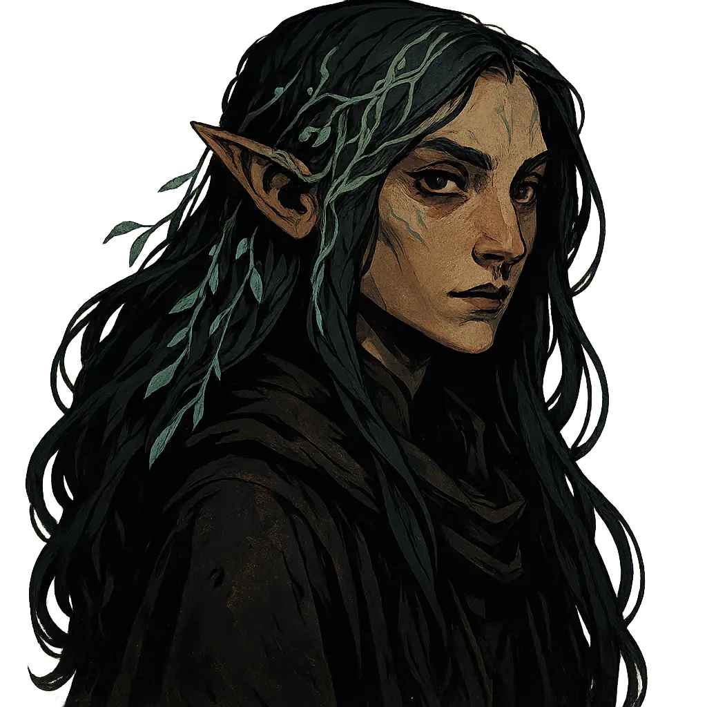 Irielle Duskwhisper is the picture of grace and empathy—her voice a whisper beneath stars, her movements more gliding than walking. Her long silvery-black hair is streaked with luminous strands of moonvine, and her dark robes carry the scent of dusk blooms and burned myrrh. Most see her as the Circle’s emissary of compassion, a gentle counterbalance to Serelion’s gravity.