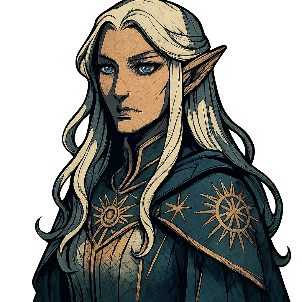 Born into an ancient elven lineage, Ithilwen dedicated herself to Elandria’s teachings from a young age, rising within the Sapphire Temple through her wisdom and unwavering devotion. As High Priestess, she has sought to preserve peace and balance, though recent unrest in Lusteris has put her at odds with both Traditionalists and Reformists alike. She distrusts the growing corruption among the nobility but fears that radical change will lead to greater suffering. When tensions reach their breaking point, Ithilwen will be forced to decide whether to stand firm in neutrality or take a side before it’s too late.