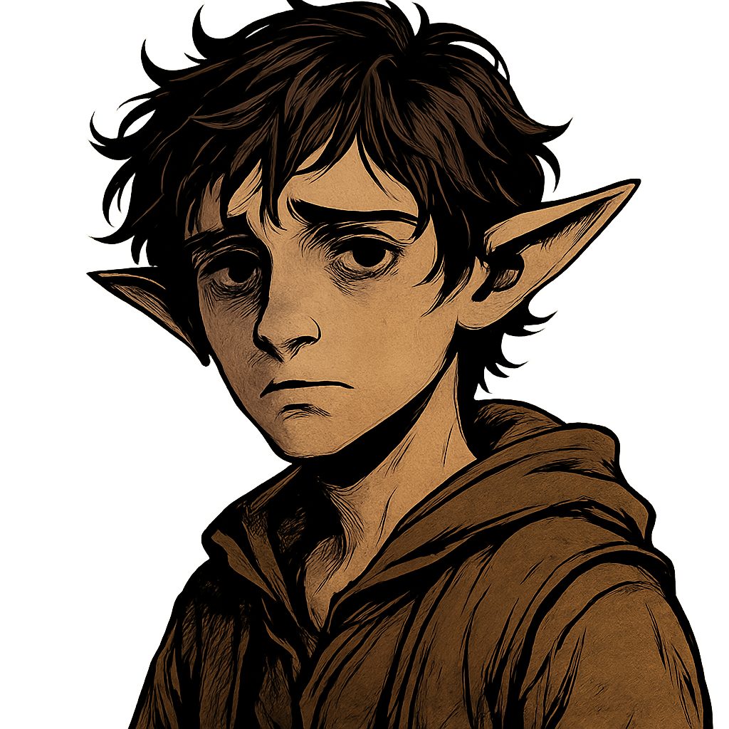 He dresses in loose, comfortable clothing, favoring a well-worn vest and an array of knives strapped across his belt. His fingers never seem to stop moving, constantly flicking a coin, a dagger, or some trinket he’s pilfered just for the thrill of it.