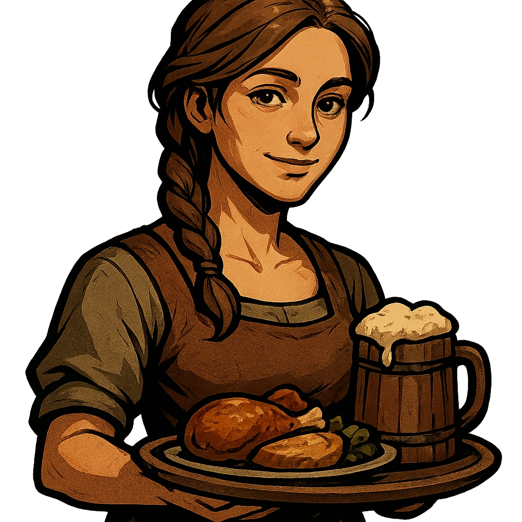 Lena Alwin is a warm-hearted woman in her late twenties with gentle features and kind eyes. Her brown hair is usually tied back in a practical braid, and she dresses simply in the sturdy clothing of a Southaven shopkeeper. She works at Rusty’s Tavern in Southaven and is known throughout the town for her generosity and kindness, often extending credit to struggling families or “accidentally” over-serving those in need (which Rusty Ironbelly turns a blind eye to).