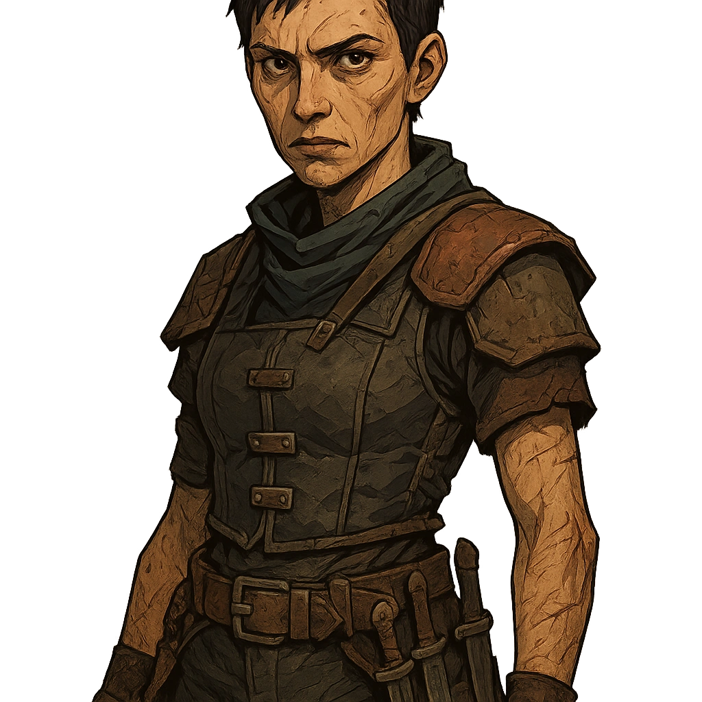 Marta “The Knife” is a lean, sharp-featured woman in her early thirties with short-cropped dark hair and calculating eyes. She moves with the practiced efficiency of someone who learned to fight on the streets before joining Southaven’s guard. A collection of throwing knives adorns her belt—her signature weapons and the source of her nickname.