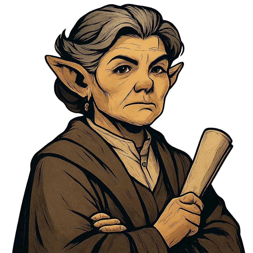 Tilly Thistle is the Dean of the Marble Academy and a Professor of Arcane Studies, known for her composed and authoritative presence. A middle-aged halfling of humble but refined elegance, she dresses in simple but nice robes. Her greying hair is always neatly arranged, and her keen brown eyes radiate both warmth and intelligence. Though she is soft-spoken, her words carry weight, and her reputation as a brilliant scholar and decisive leader is well-earned.