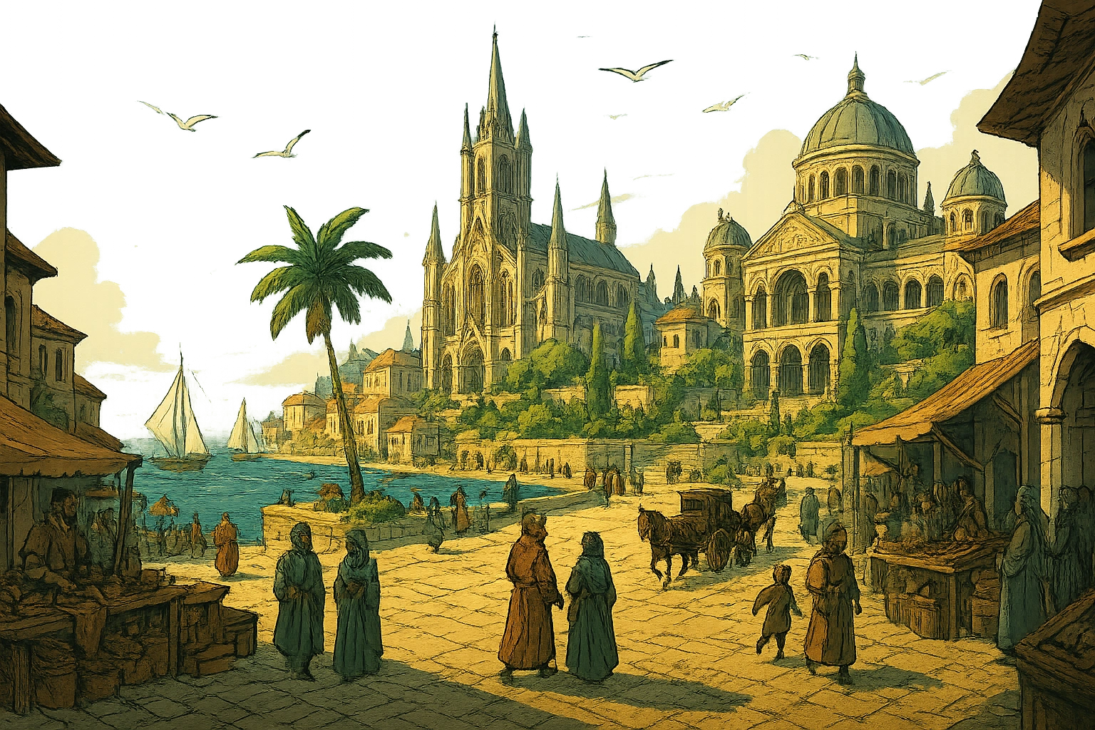 Solara is a land of culture, scholarship, and prosperity, where art and architecture flourish under royal patronage and the Church’s guidance. Yet beneath its gilded surface lie tensions: noble houses vie for power, the Church’s influence grows ever stronger, and dissenters flee to places like Lusteris in search of freedom from Solaran authority.