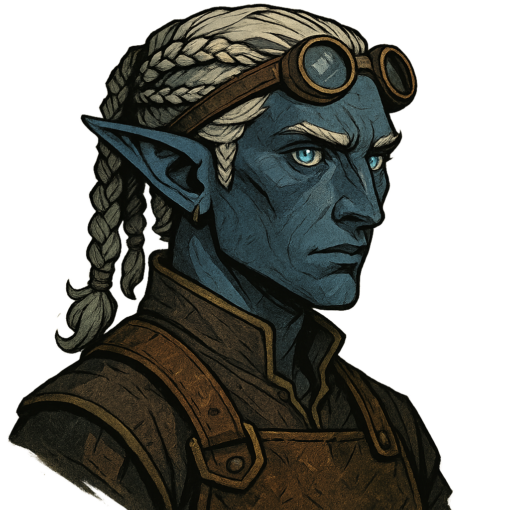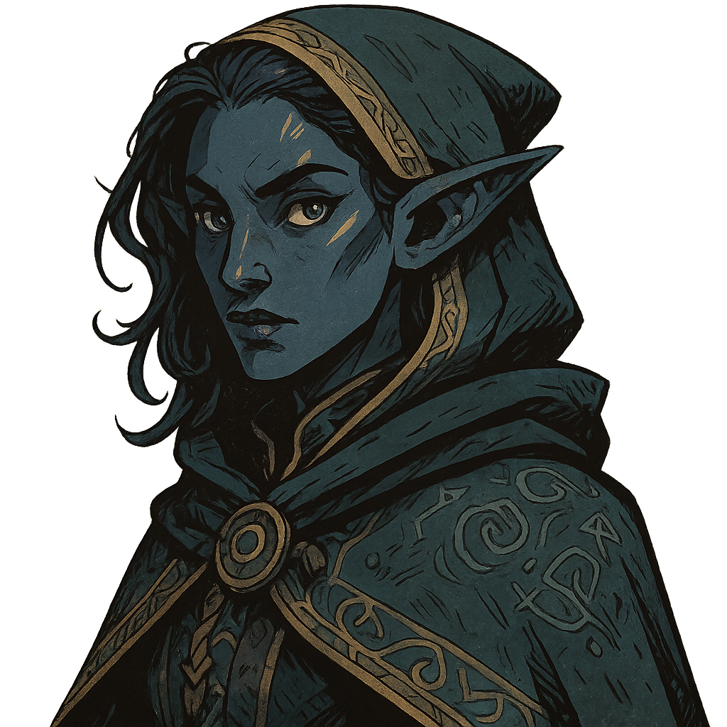 High on the slopes of the Eastern Dragonspire Mountains, nestled where pine forests brush against stone cliffs, lies the elven town of Fadrín. Unlike their kin of the deep Elfwood, the elves of Fadrín are marked by their striking blue-hued skin, a trait said to be born from generations of mountain air, starlight, and the icy streams that carve through their home. Their presence gives the town a dreamlike quality—figures of sapphire and indigo moving with quiet grace beneath the green canopy and gray stone.