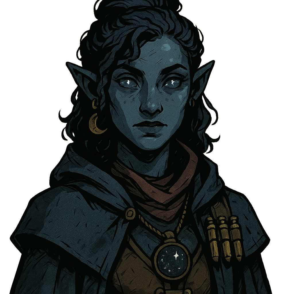 Owner: Ilyanara Moonstone, an enigmatic diviner with twilight-blue skin and eyes that seem to reflect distant starlight. She sees much and speaks little, but her items are always exactly what adventurers need.