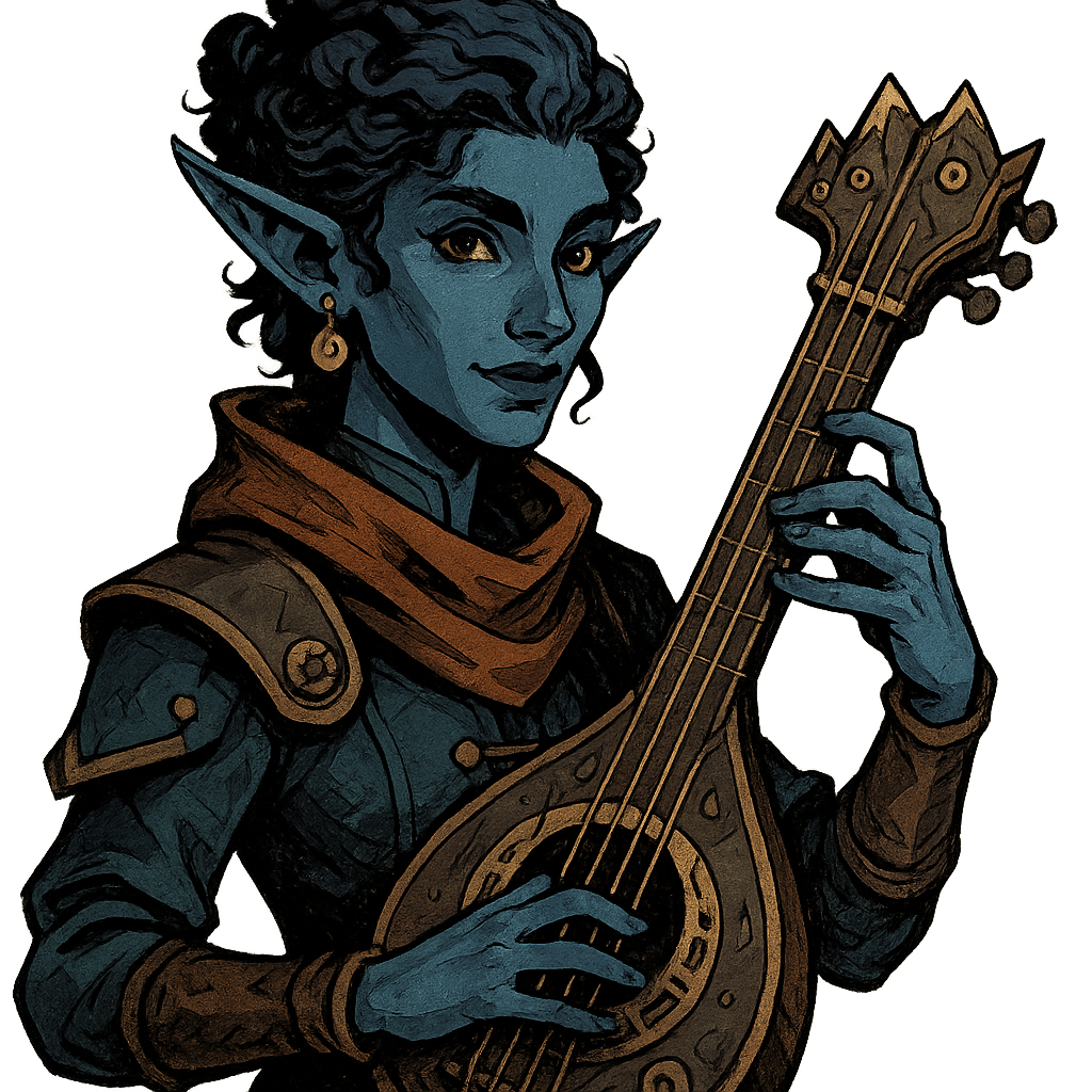 Owner: Thalirel Songwind, a blue-skinned bard with a voice like crystal bells and fingers that dance across strings. Her instruments are said to capture the voice of the mountains themselves.