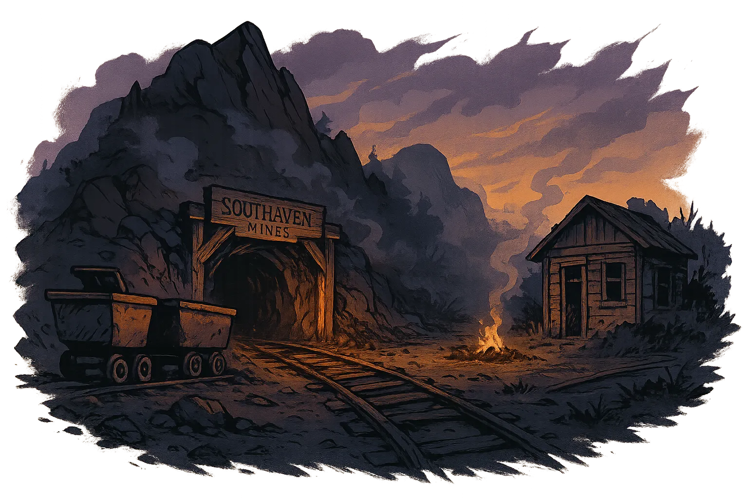 The Southaven Mines are a major part of the Southaven economy, providing jobs and resources for the local community. The mines are located in the hills to the north of Southaven, and are accessible by a network of roads and railways. After seeing the mines marked on a cultist map, the party investigated them and found bandits had been using a section of the mines as a base of operations. They also found an echoing shard, one of the ingredients Bixby Wizzlethorpe asked them to keep an eye out for, in a dark abandonded section.